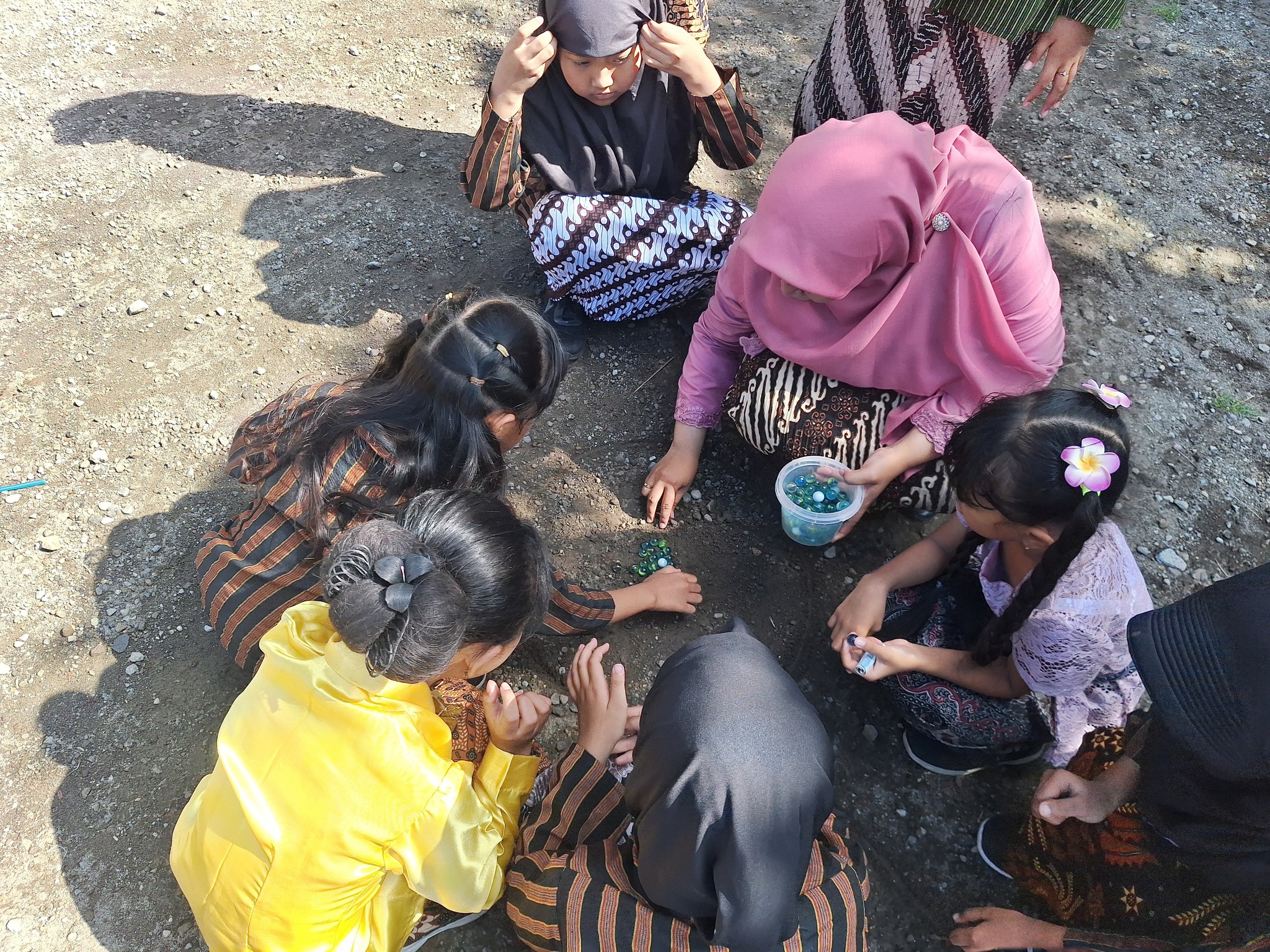 Bermain Kelereng: Di sudut lain halaman, konsentrasi tinggi terlihat dari para siswi yang mengikuti bermain kelereng. Permainan tradisional ini melatih ketepatan, kesabaran, dan fokus kualitas yang sangat relevan untuk dimiliki para siswi dalam menempuh pendidikan.