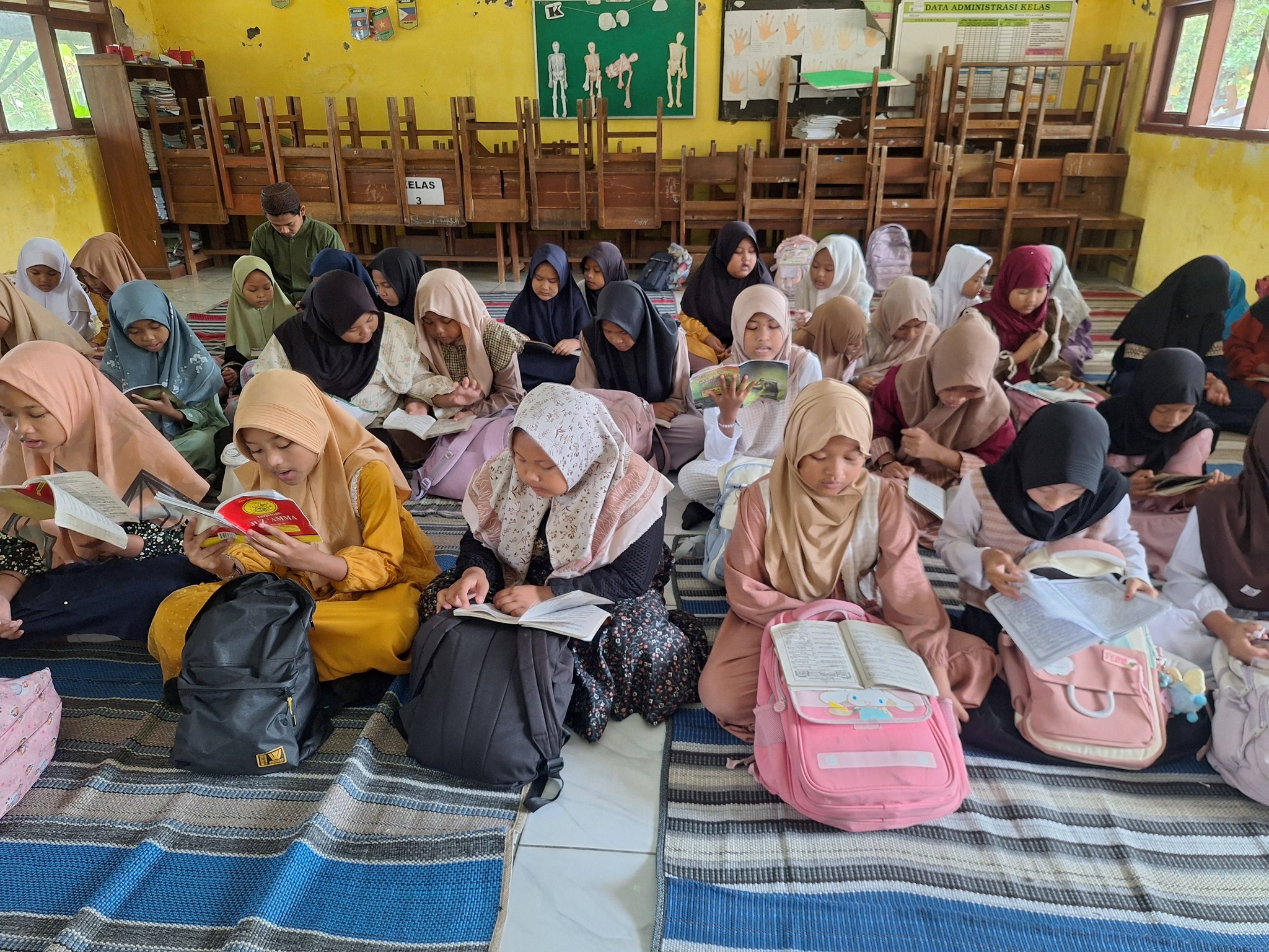 Setiap pagi, suasana sekolah terasa lebih tenang dan sejuk dengan lantunan ayat suci Al-Qur’an. Siswa kelas 1-6 secara bergantian melaksanakan Shalat Dhuha berjamaah bersama di mushola sekolah sebagai bentuk literasi religi.